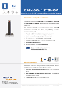 The 127/EM 800A automatic bollard offers the same performance as the 600A version but with a taller structure, ensuring high visibility even for vans. Its control unit can manage up to 3 bollards. The single LED ensures visibility with minimal energy consumption. Ideal for daily use of around 100 cycles/day.